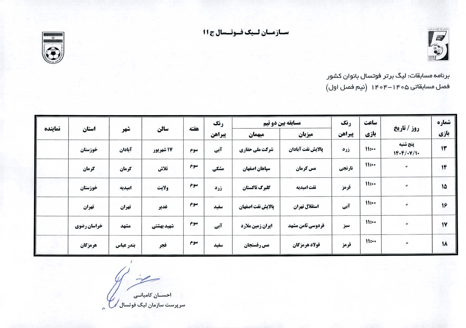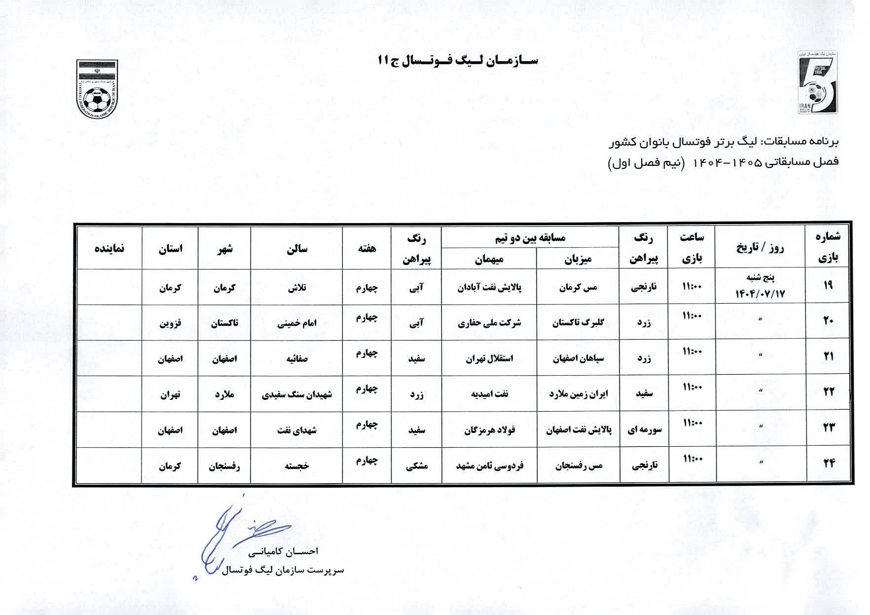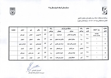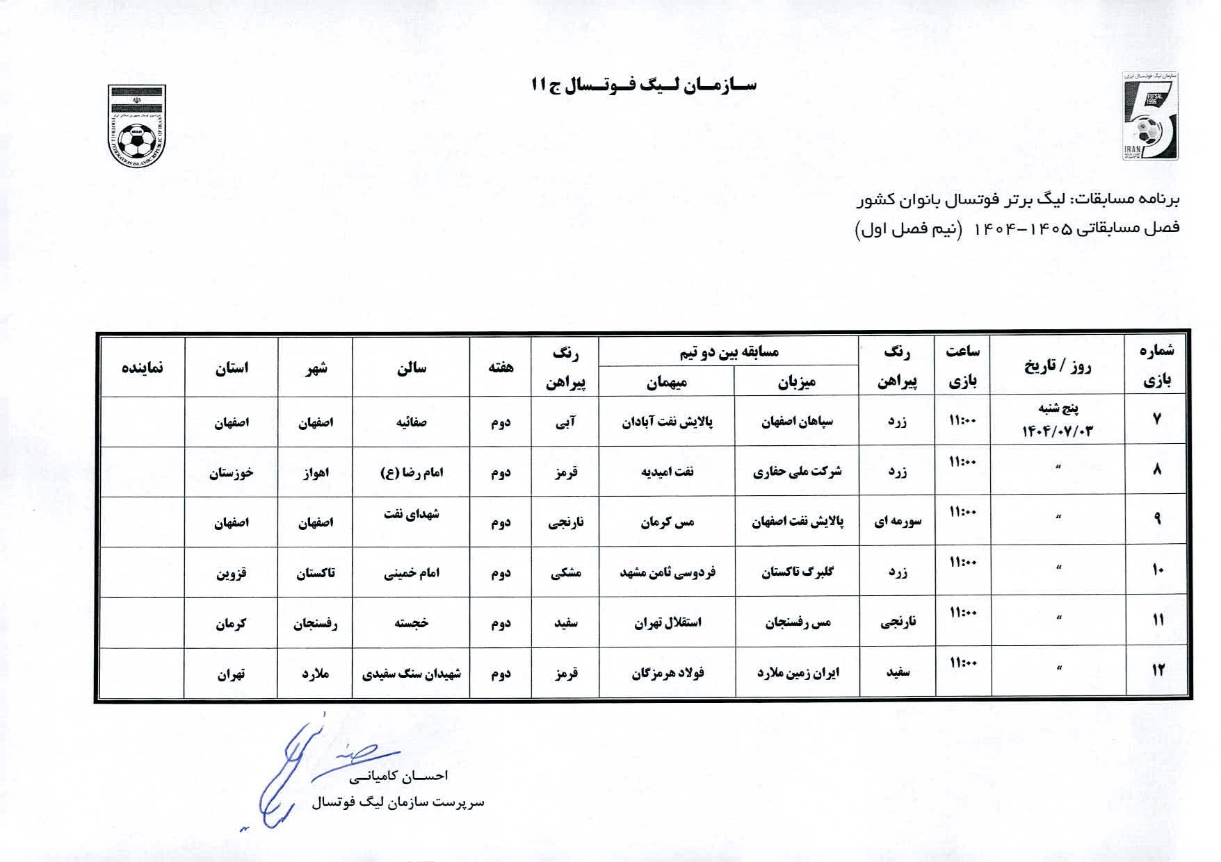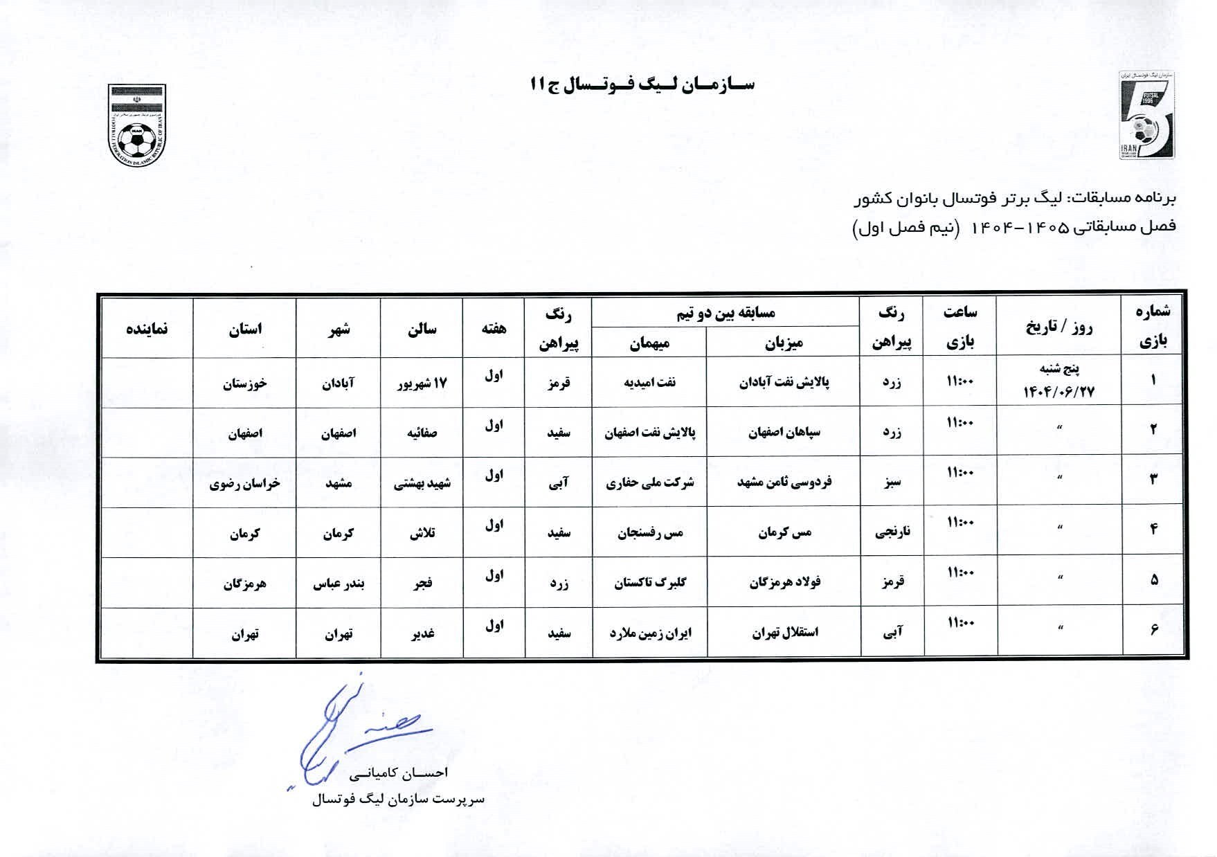 به گزارش سایت رسمی فدراسیون فوتبال، برنامه مسابقات هفته اول تا چهارم لیگ برتر فوتسال بانوان به شرح زیر است: