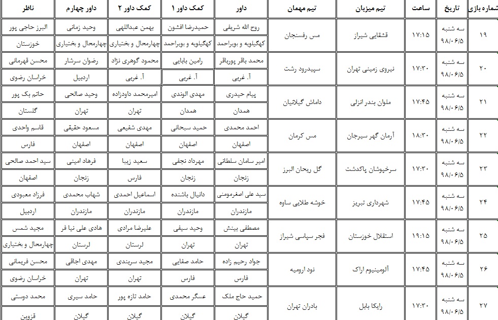 اعلام اسامی داوران هفته هفتم لیگ دسته اول